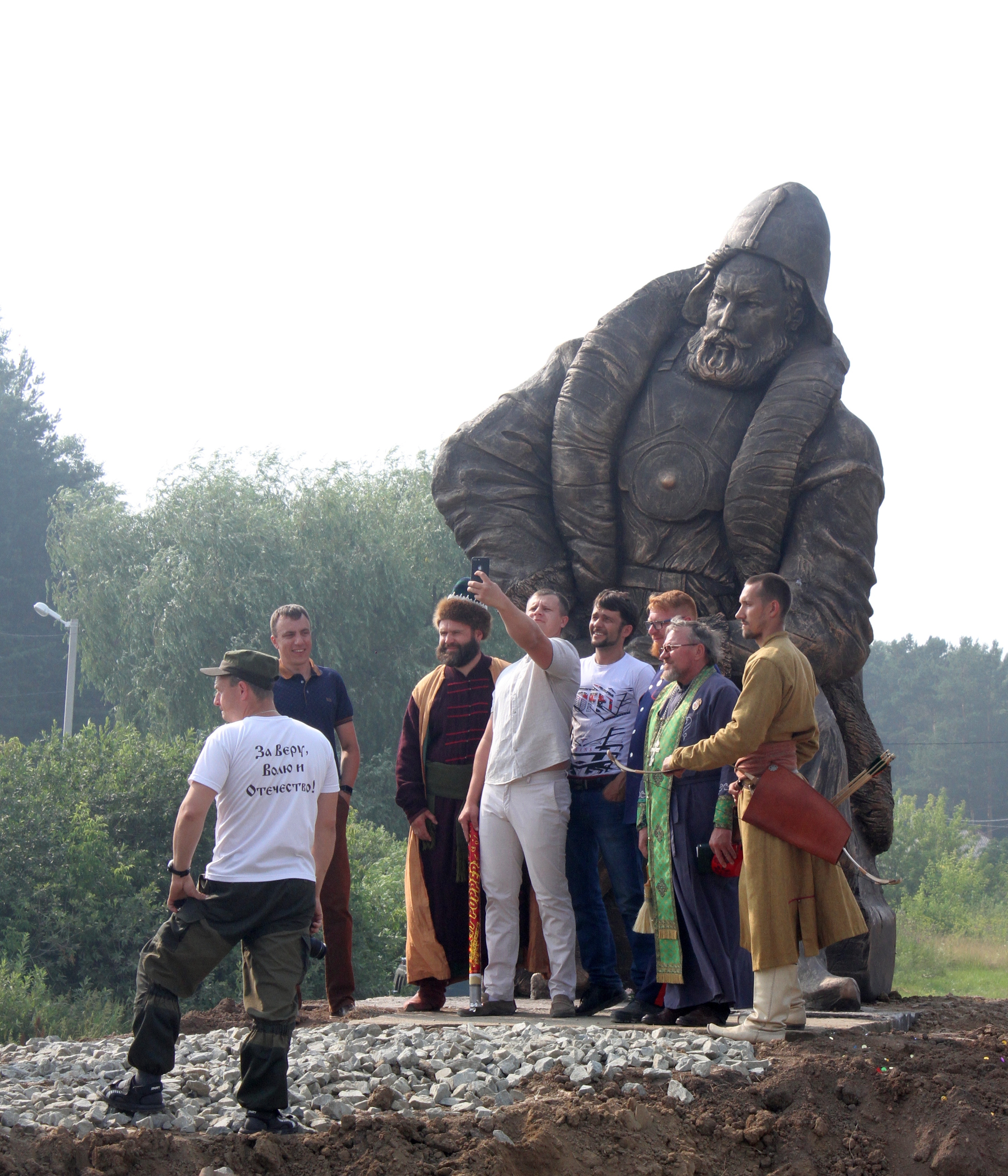 Памятник Ермаку, 2019 год. Фото – Александр Титов. В 2019 году, в дни празднования 425-летия Тары, на перекрёстке улиц Лихачёва, Радищева и Спортивной был открыт памятник Ермаку. Памятник был установлен за счёт средств группы предпринимателей Тары. Общественного обсуждения инициативы по установке памятника и внешнего вида скульптуры в Таре не было. Автором скульптуры стала жительница села Одесское Оксана Бойко. Пространство у памятника Ермаку получило название «Сквер Ермака» и несколько раз участвовало в рейтинговом голосовании по выбору общественных территорий для благоустройства. Каждый раз сквер не набирал необходимого количества голосов жителей Тары и до сиз пор продолжает оставаться необустроенным пустырём. Памятник Ермаку, 2019 год. Фото – Александр Титов.  |