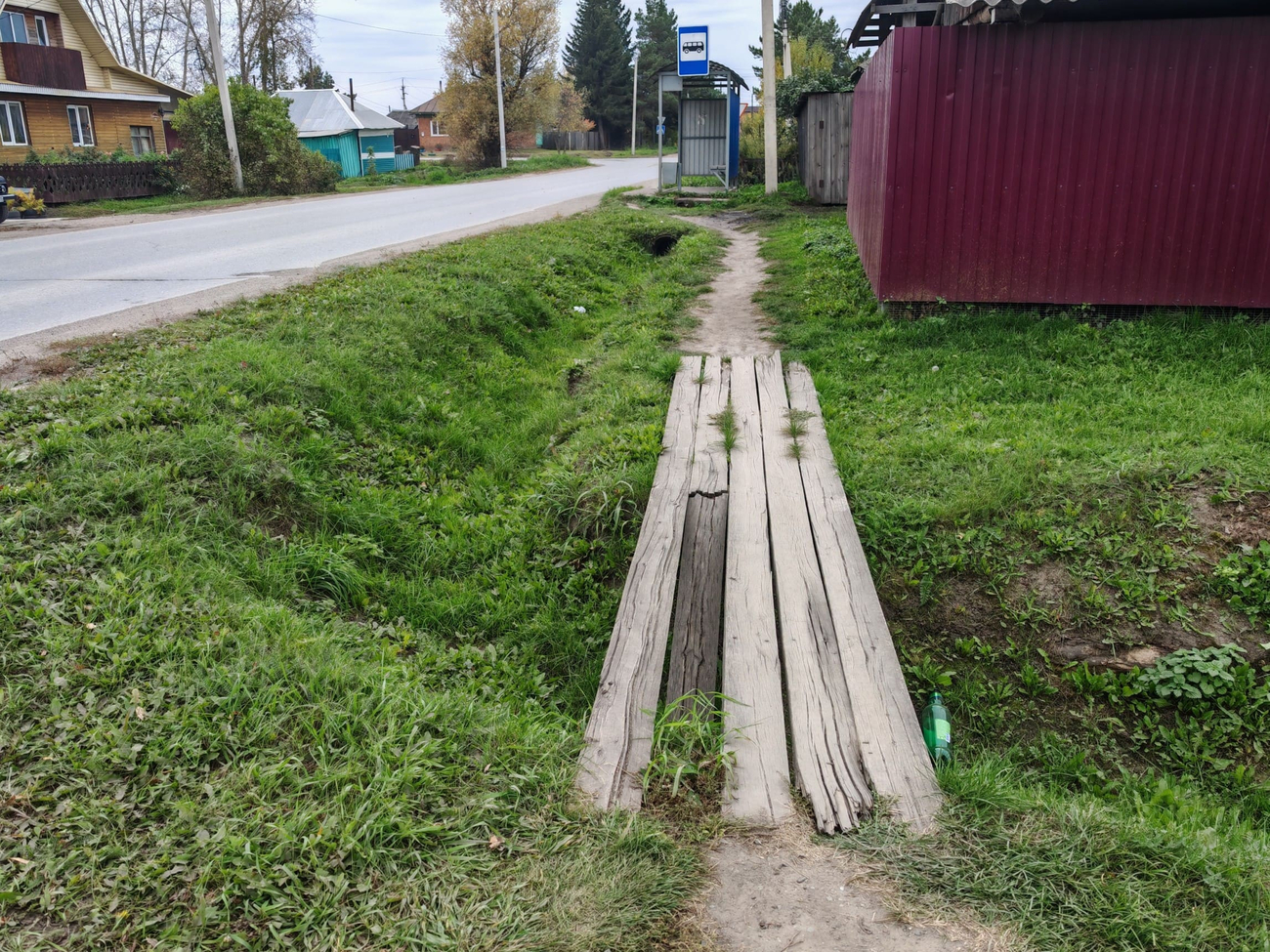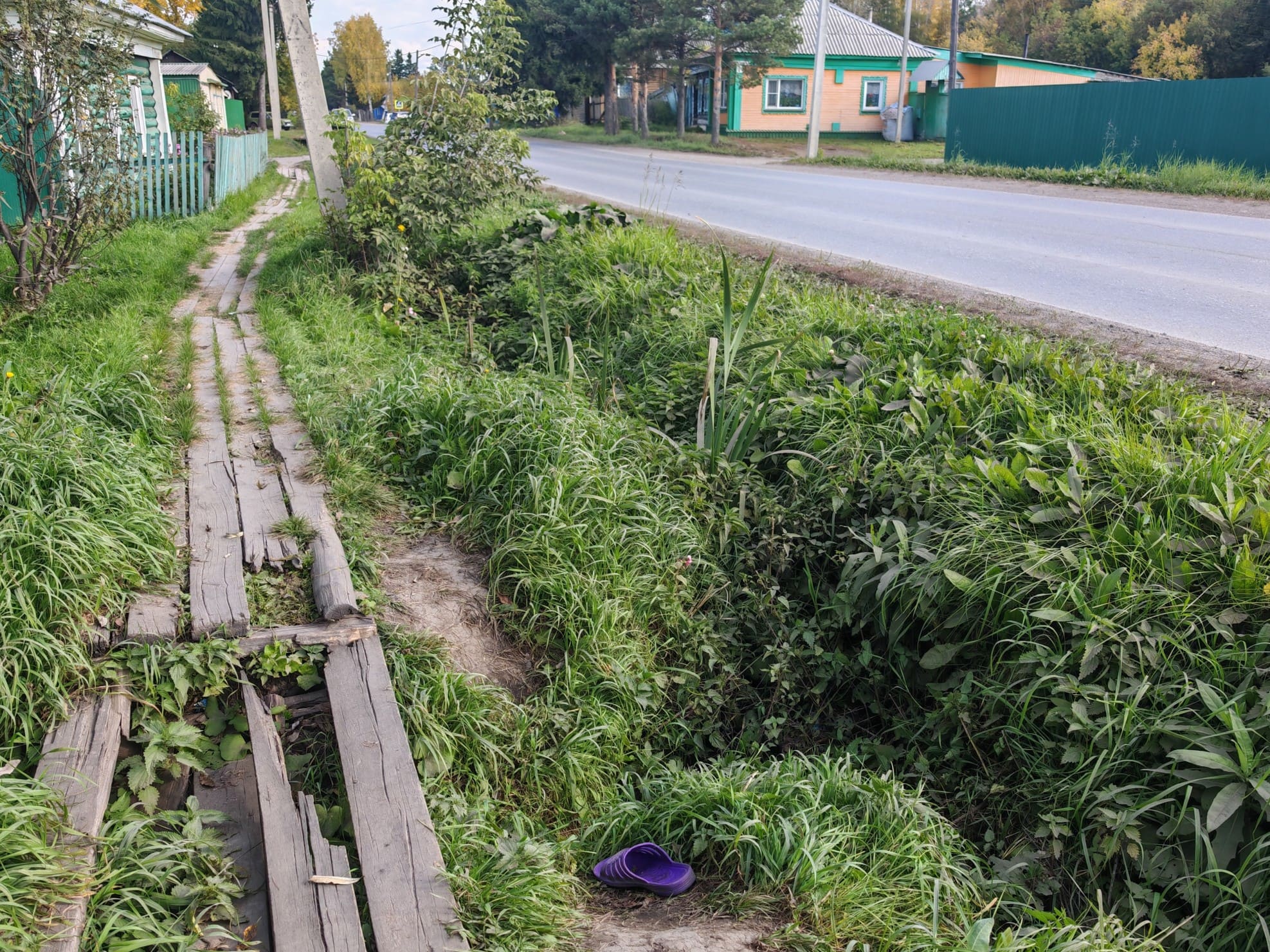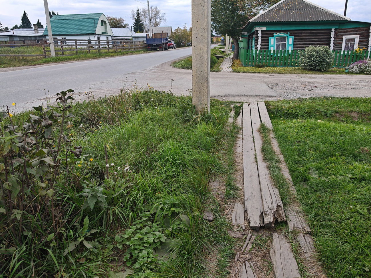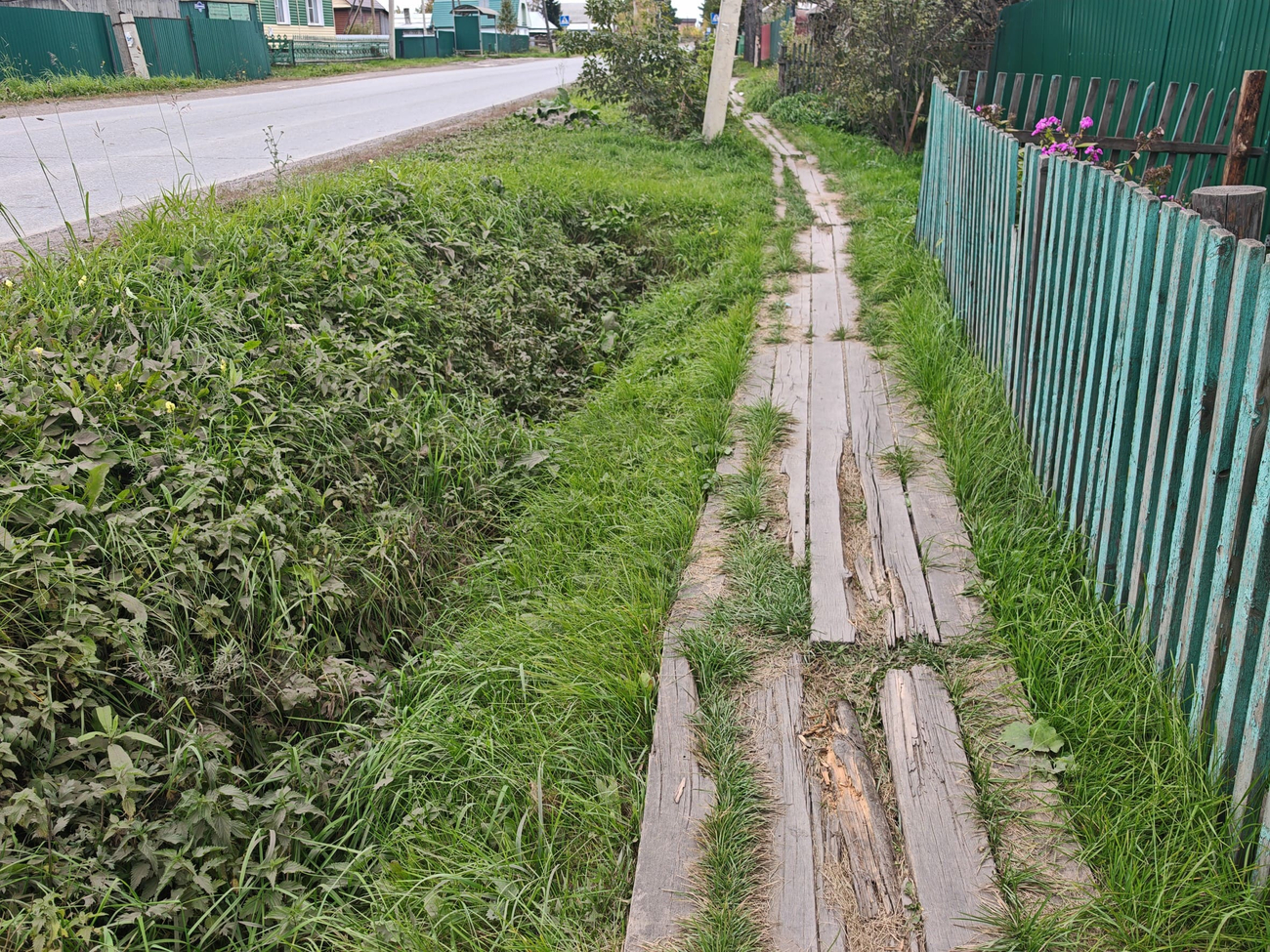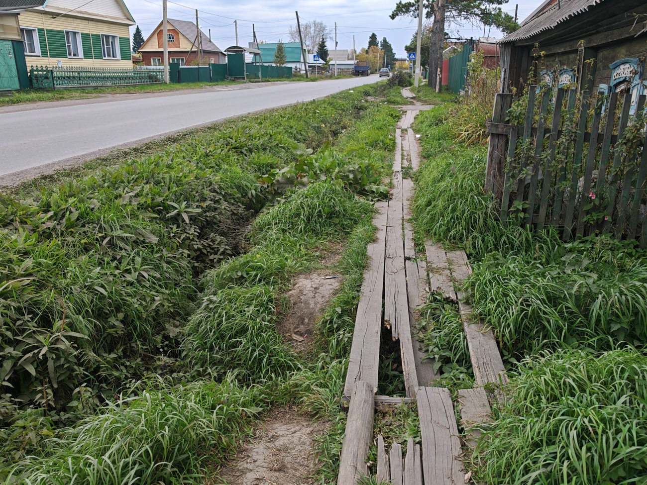 Тротуар на улице Избышева в Таре. XXI век, Россия. Фото – Тарагород. В Таре XXI века жители продолжают ходить по деревянным тротуарам, которые в буквальном смысле сгнили под ногами и несут прямую угрозу здоровью тарчан. На улице Избышева во многих местах проломились доски, где-то их вовсе нет, из земли торчат гвозди, а люди вынуждены либо балансировать на опасных участках, теряя обувь в зарослях канавы, либо выходить на проезжую часть, рискуя жизнью. Фотографии, сделанные неделю назад, говорят сами за себя: вместо пешеходной зоны – полоса препятствий. Для мам с колясками или пожилых людей это место превращается в смертельно опасный маршрут: Фото – Тарагород В прошлом году администрация города традиционно разводила руками: «Средств на строительство тротуара не запланировано». Заместитель главы прямо признал: асфальтировать улицу не могут – слишком дорого, поэтому продолжают укладывать доски. Те же самые, что через три-четыре года снова сгниют. Выходит, что райцентр Омской области не может позволить себе элементарного – безопасных тротуаров. Деньги на это «не предусмотрены». Но именно по этим тротуарам каждый день ходят дети, пенсионеры и все горожане. Год назад власти пообещали «подправить гвозди и заменить отдельные доски», но жители не дождались и этого. Ирония в том, что проблема стара как сама Тара. Ещё в середине прошлого века здесь сочинили частушку, которая остаётся актуальной и сегодня: