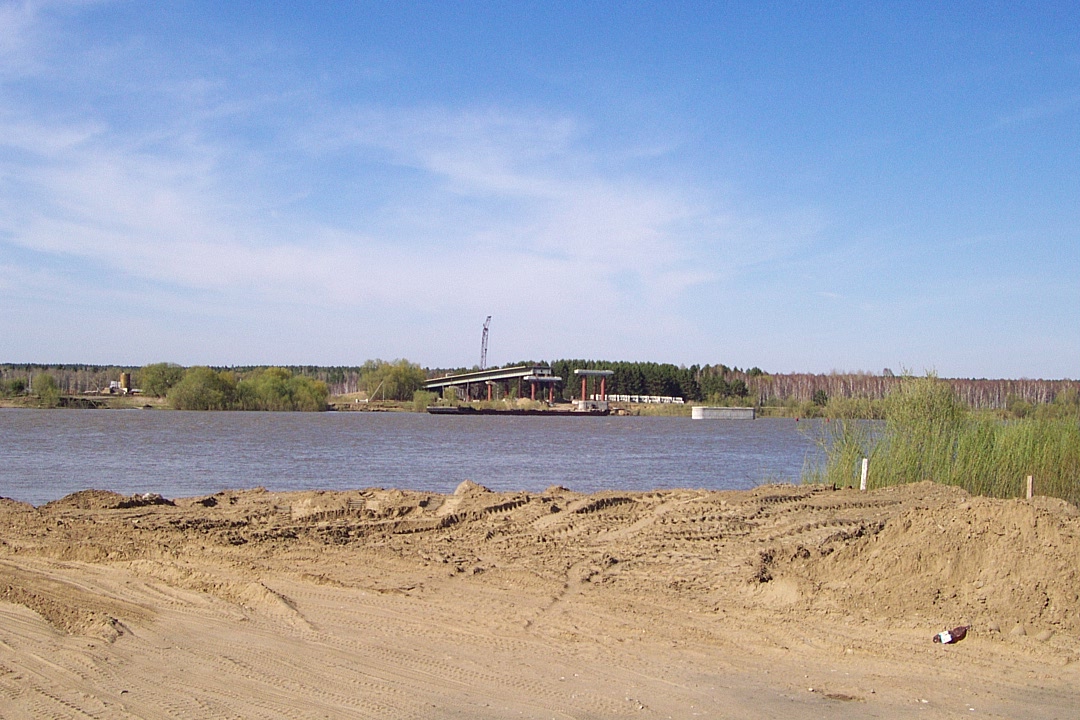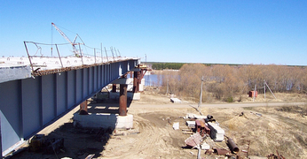 Основной объём работ по монтажу русловых пролётов был выполнен зимой 2003–2004 гг. В течение трёх месяцев строители смонтировали более 3-х тысяч тонн металлоконструкций, добившись высочайшей точности сборки. А точность при замыкании последнего блока была настолько безупречной, что без малейшей «черноты» совпали все 500 отверстий монтажных стыков замкового блока.